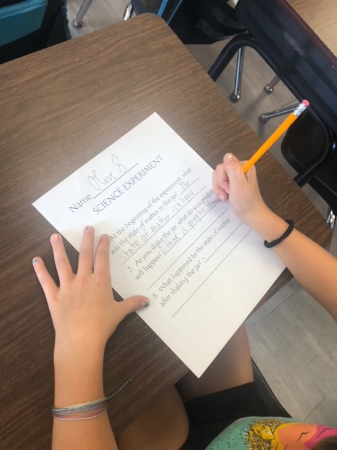 As 3rd grade students were learning about states of matter they made homemade butter and watched it change from liquid to solid state right before their eyes! Then the kids enjoyed homemade butter and crackers!