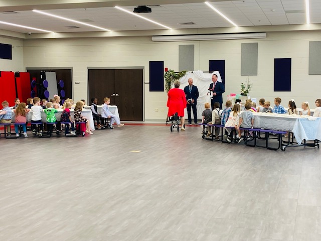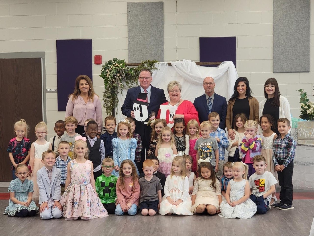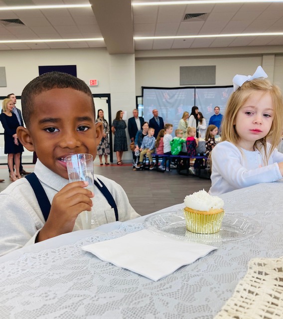 Today Kindergarten witnessed the language marriage of Mr. Q and Mrs. U. Students dressed in their fancy attire and witnessed as Coach Carter officiated the wedding. The reception included cake and punch along with opening “QU” gifts like quilts, quills, and more. The reception ended with some Hokey Pokey.